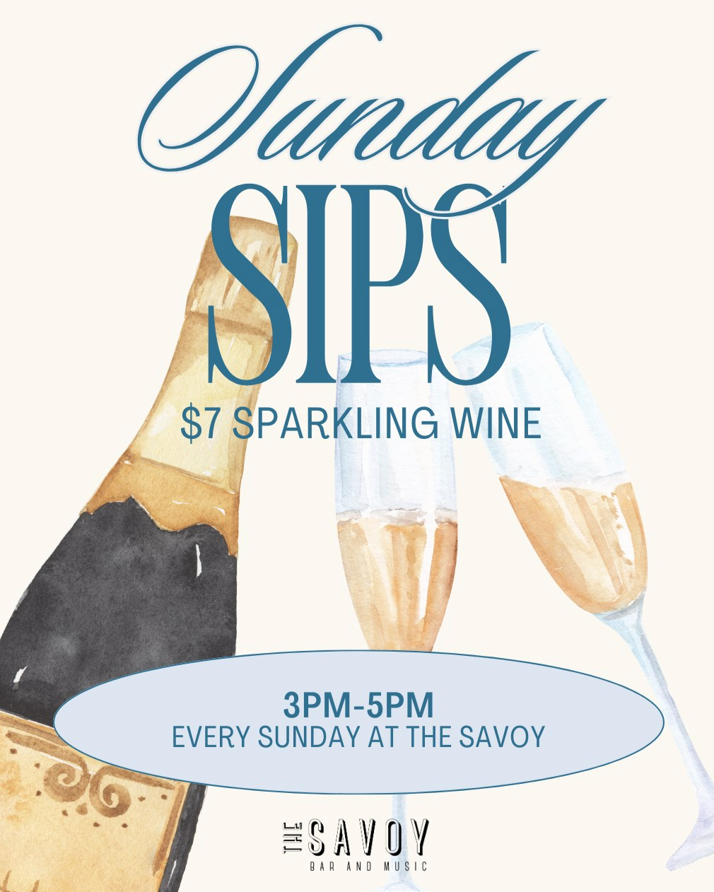 $7 Sparkling WineFROM 3PM-5PM! Every Sunday at The Savoy Bar and Music. Yep, you read that right